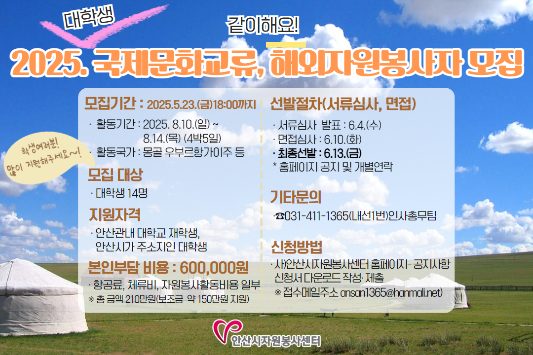 2025. 국제문화교류, 해외자원봉사활동 참여 대학생 모집